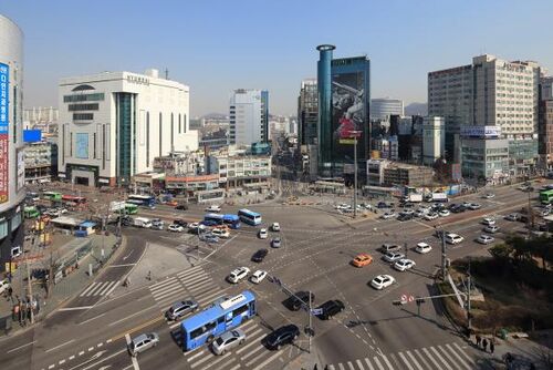 ソウルの繁華街が江南に移った現在はさほどではないが、この街が建設されてから500年間、中心街であり続け、多くの人で賑わった。写真右側に一部写っている普信閣(鐘閣)のあるこの交差点が、ソウルの伝統的な中央である 普信閣(鐘閣)の向かいにある鐘路…